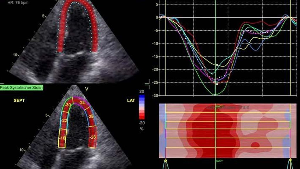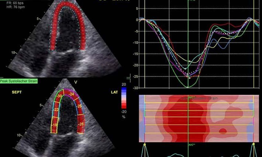 1 Arbelo E et al.: 2023 ESC Guidelines for the management of cardiomyopathies: Developed by the task force on the management of cardiomyopathies of the European Society of Cardiology (ESC). Eur Heart J 2023; 44(37): 3503-26 2 Mitchell C et al.: Guidelines for performing a comprehensive transthoracic echocardiographic examination in adults: Recommendations from the American Society of Echocardiography. Journal of the American Society of Echocardiography [Internet] 2019; 32(1): 1-64 Available from: http://dx.doi.org/10.1016/j.echo.2018.06.004 3 Hampson R et al.: Contrast echocardiography: a practical guideline from the British Society of Echocardiography. Echo Res Pract 2023; 10(1): 23 4 Tadic M, Cuspidi C: Left ventricular strain and arterial hypertension: Is longitudinal strain ready for primetime? J Clin Hypertens 2020; 22(4): 683-5 5 Cardim N et al.: Role of multimodality cardiac imaging in the management of patients with hypertrophic cardiomyopathy: an expert consensus of the European Association of Cardiovascular Imaging Endorsed by the Saudi Heart Association [Internet]. Available from: https://academic.oup.com/ehjcimaging/article/16/3/280/2399949 6 Tower-Rader A et al.: Prognostic value of global longitudinal strain in hypertrophic cardiomyopathy: A systematic review of existing literature. JACC Cardiovasc Imaging 2019; 12(10): 1930-42 7 Fan J et al.: The value of myocardial work in patients with left ventricular hypertrophy. International Journal of Cardiovascular Imaging 2023; 39(6): 1105-13 8 Desai MY et al.: Serial changes in ventricular strain in symptomatic obstructive hypertrophic cardiomyopathy treated with mavacamten: Insights from the VALOR-HCM trial. Circ Cardiovasc Imaging 2024; 17(9): e017185 9 Desai MY et al.: Mavacamten-associated temporal changes in left atrial function in obstructive HCM: Insights from the VALOR-HCM trial. JACC Cardiovasc Imaging 2025; 18(3): 251-62 10 Rausch K et al.: Left atrial strain imaging differentiates cardiac amyloidosis and hypertensive heart disease. Int J Cardiovasc Imaging 2021; 37(1): 81-90 11 Inoue K et al.: Determinants of left atrial reservoir and pump strain and use of atrial strain for evaluation of left ventricular filling pressure. Eur Heart J Cardiovasc Imaging 2022; 23(1): 61-70 12 Smiseth OA et al.: Myocardial strain imaging: Theory, current practice, and the future. JACC Cardiovasc Imaging 2024; 18(3): 340-81 13 Thomas JD et al.: Clinical applications of strain echocardiography: A clinical consensus statement from the American Society of Echocardiography developed in collaboration with the European Association of Cardiovascular Imaging of the European Society of Cardiology. Journal of the American Society of Echocardiography 2025; S0894-7317(25)00395-5