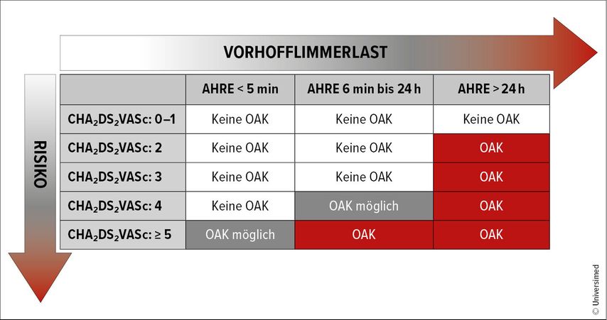 Ob eine orale Antikoagulation notwendig ist, hängt stark vom Risikoprofil des Patienten und der Last des subklinischen VHF ab.