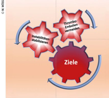 Abb. 1: Therapieziele sind die Vermeidung sekundärer ischämischer Ereignisse, die Reperfusion des betroffenen Gefäßes und die Prävention neurologischer Defizite durch Schaffen stabiler Verhältnisse