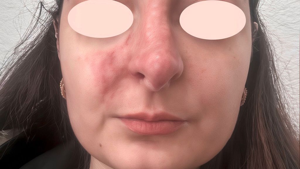 Eine 26-jährige Patientin stellte sich mit unklaren, progredienten Hautveränderungen vor, die nach einer ästhetischen Behandlung mit Hyaluronsäure(HA)-Injektion in einer Klinik für plastische und ästhetische Chirurgie in Italien auftraten. Ende Dezember 2024 wurde ein hyaluronbasierter Filler in den Nasenrücken, die Nasenflanken, die Nasolabialfalte und die Columella injiziert. Bereits während der Injektion im Bereich der oberen Anteile der Nasolabialfalte bzw. der Apertura piriformis verspürte die Patientin einen Schmerz. Weniger als 24 Stunden nach der Behandlung bemerkte sie eine sich verbreitende Blässe der Haut, woraufhin sie die behandelnde Ärztin kontaktierte. Diese empfahl eine Behandlung mit Aspirin sowie ein abwartendes Vorgehen.